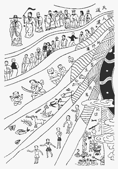 因此,心地的灵台,即是金银宫殿,西方琉璃世界。富贵福禄,都可由心去如意求取;此身所处的世界,即是天堂了。那还有牛鬼,夜叉来杀剐;刀山剑岭可怖之境呢?