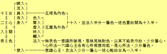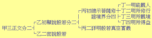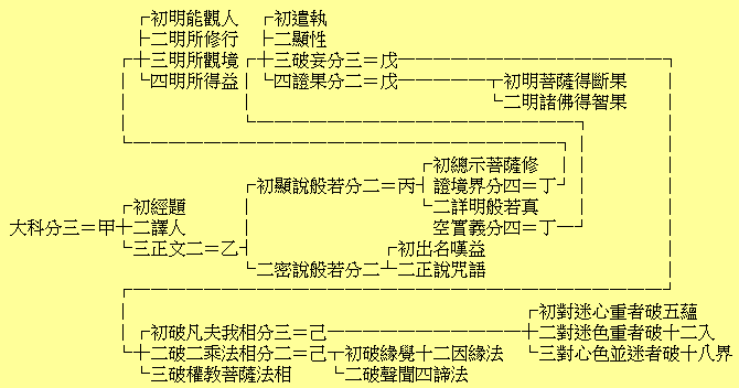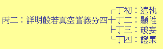甲初:经题分二——乙初:分释二:合释(以下均依此二法不另出科目)。