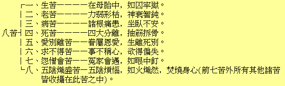 次明八教。如来一代教化,其随机施教,说了无量法门,归纳起来不出八种教相,分为两种四教——化仪四教、化法四教,合为八教。
