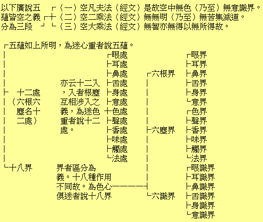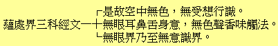 是故空中无色无受想行识无眼耳鼻舌身意无色声香味触法无眼界乃至无意识界